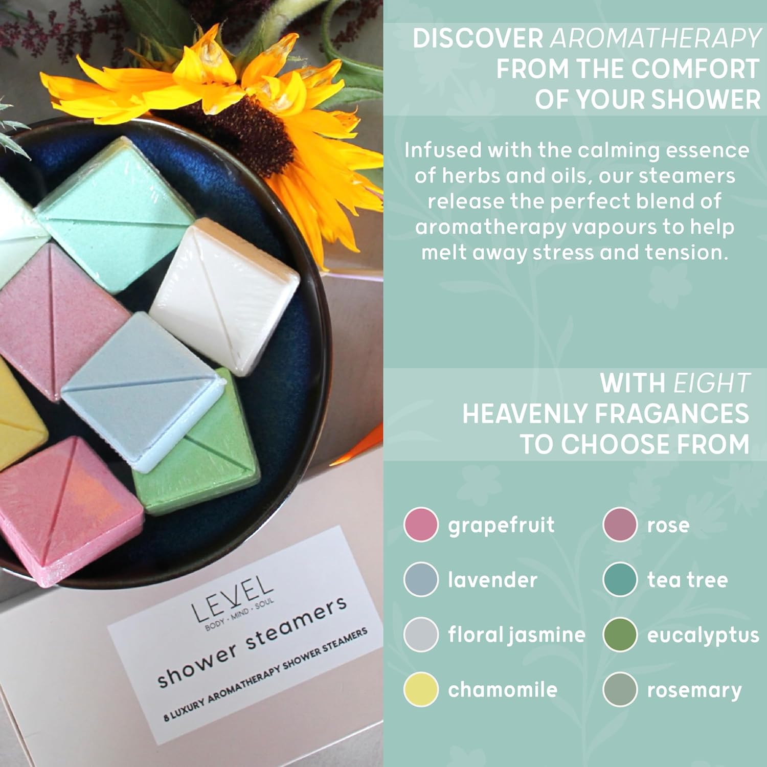 - STRESS RELIEF: Unwind and de-stress with our heavenly scented shower steamers. Infused with the calming essence of herbs and oils, our steamers release the perfect blend of aromatherapy vapours to help melt away stress and tension. Simply place a shower steamer in your shower, and as the warm water activates it, the delightful aroma will envelop you, creating a serene and relaxing ambiance. Elevate your shower time and turn it into a blissful escape with our stress-relief shower steamers.